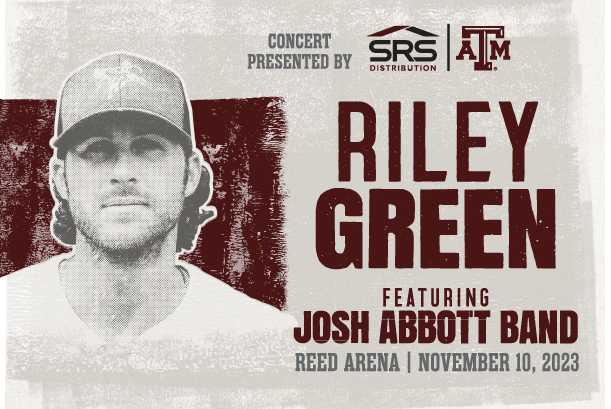 SRS Distribution has expanded its Texas A&M Military Appreciation Sponsorship to include a concert featuring Riley Green with special guest Josh Abbott Band. The concert will be held on Friday, November 10 at Reed Arena, prior to Saturday’s Military Appreciation Game at Kyle Field against Mississippi State.